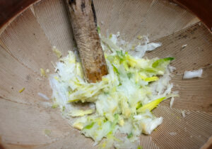 雪の下に埋まっているネギを取ってきて ネギ味噌を作って食べました。